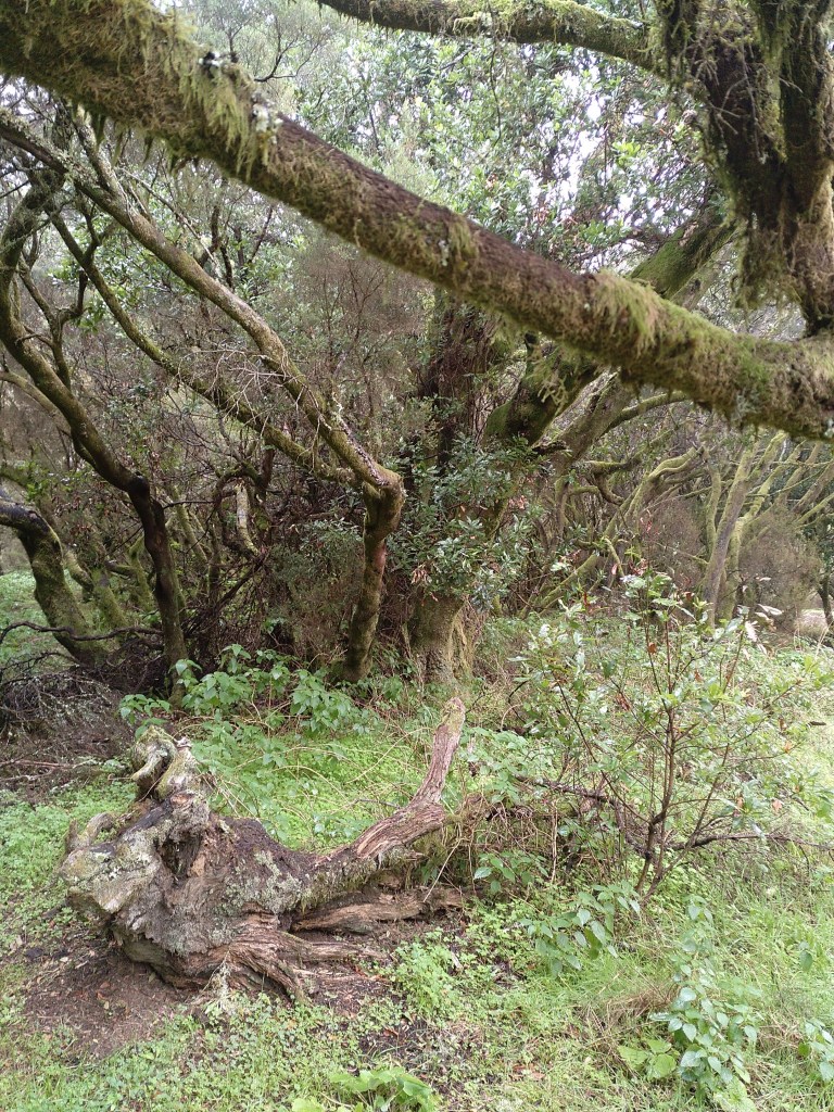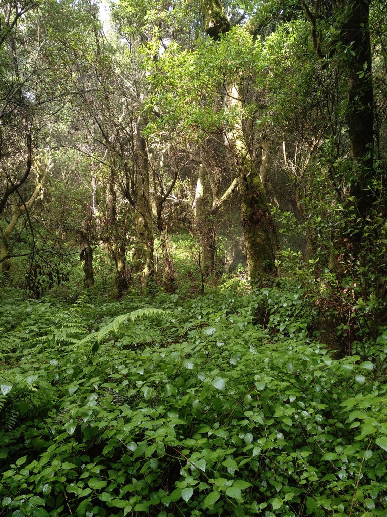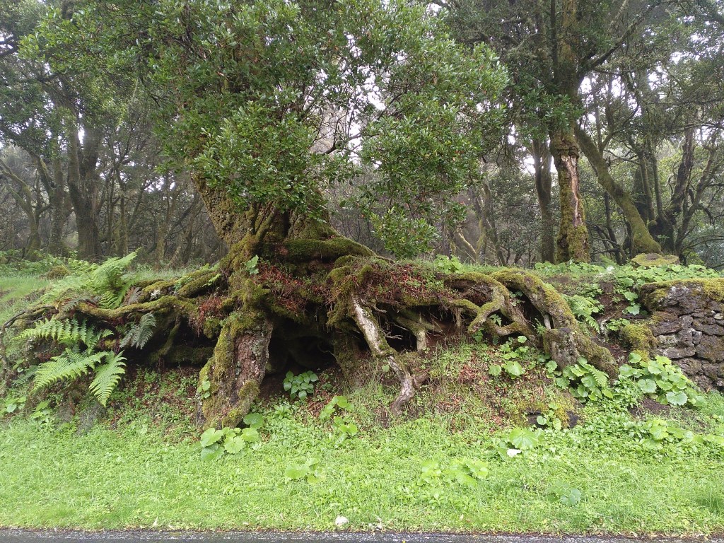 Pero no puedo resistirme a constatar el hecho de que apenas puedo imaginar un lugar más bello que el bosque de laurisilvas por los que pude pasear con extremada soledad y silencio. Como si de muñecas rusas se tratara, allí me encontré con una isla dentro de la isla y en ella me sentí como un náufrago a la deriva entre los húmedos árboles de figuras fantasmales bajo la niebla y la llovizna. En esa segunda, o tercera isla si consideramos como tal el estruendoso silencio, alcancé la sensación de no formar parte del mismo mundo en el que vivo cotidianamente rodeado de asfalto, coches y ansiedades. Fue como cruzar un túnel del tiempo para transitar por un rato por un mundo primigenio y sin contaminar. Pareciera que toda la isla estuviera pensada como un tabernáculo para custodiar ese pequeño sanctasanctórum, donde se sublima el misterio de la naturaleza.